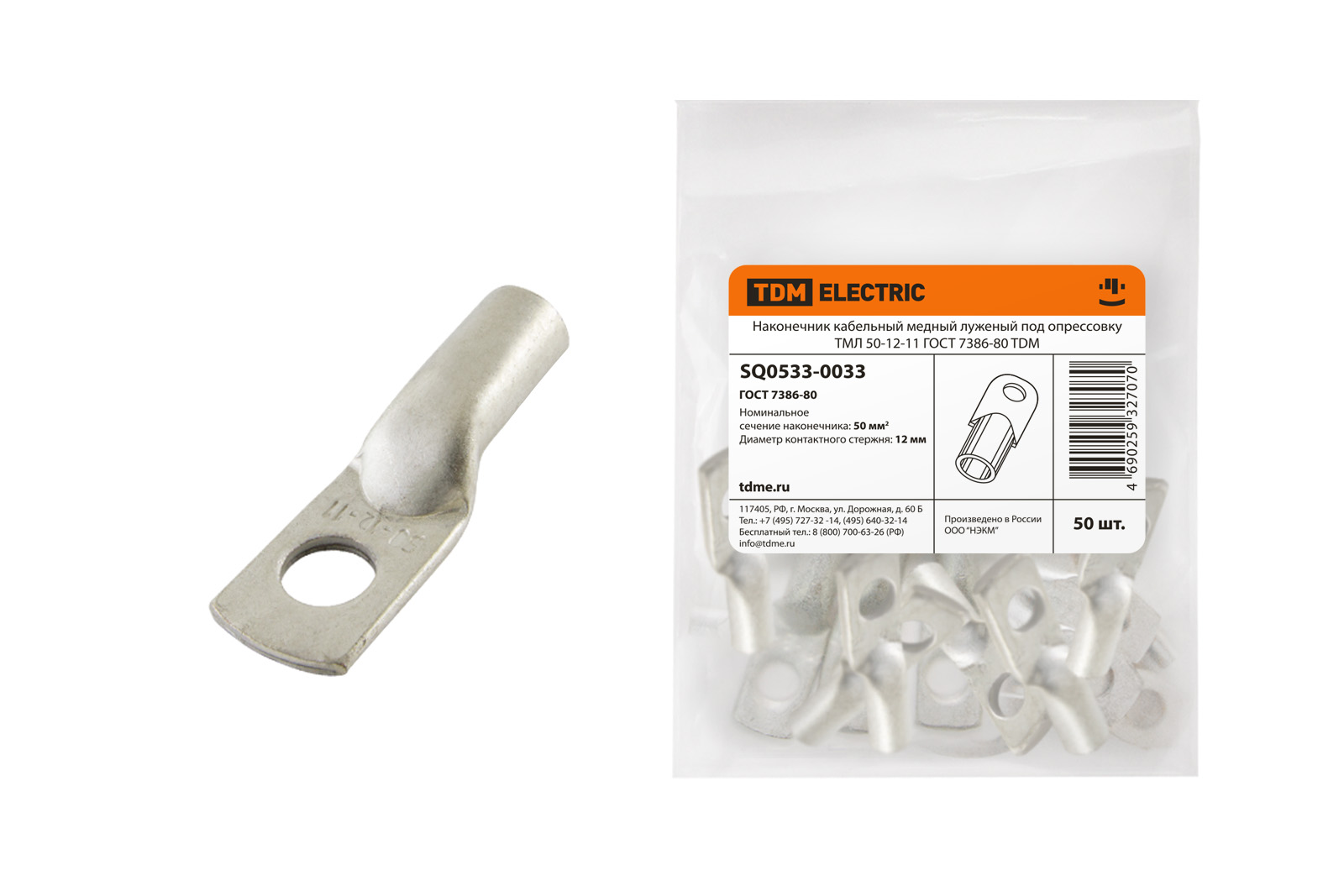 Наконечник ТМЛ кольцевой, 50 мм², медь, под опрессовку, 50 шт., TDM ЕLECTRIC 7386-80 (SQ0533-0033), 7386-80