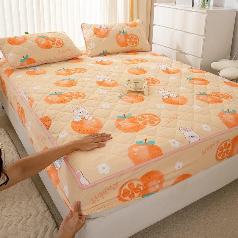 Наматрасник с принтом, водонепроницаемый стеганый наматрасник, протектор, регулируемые чехлы на кровать, простыни, антибактериальная накладка для кроватей 2xPillowcase NOSHEET