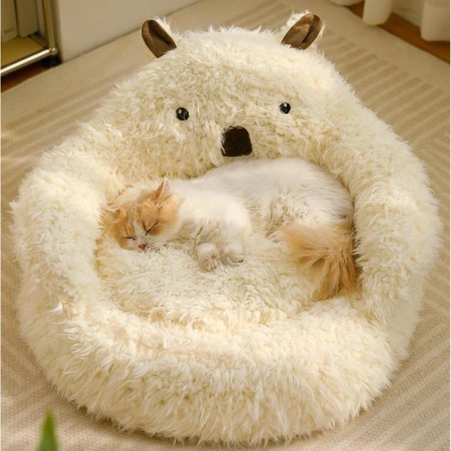 Наполнитель для кошачьего туалета из альпаки, зимнее теплое гнездо с плюшевыми подушками, противоскользящее дно с приподнятыми краями, ПП, хлопок, рельефная кошачья кровать 40 белый