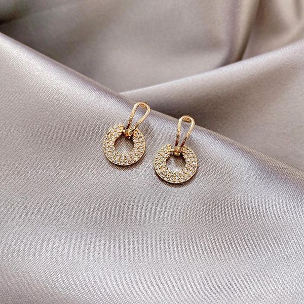 2021 new arrival trendy simple crystal geometric round stud earrings for women elegant fashion gold color metal party pendiente, Golden;silver