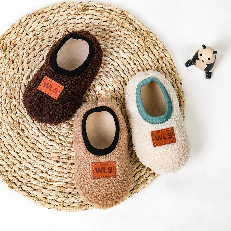Напольная обувь для малышей, тапочки для младенцев, малышей, плюшевая теплая обувь для мальчиков и девочек, мягкая Нескользящая домашняя школьная детская зимняя обувь для детей