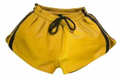 Наппа Натуральная Кожа Классический Спортивный Стиль Желтые Шорты Новые Ручной Работы Одежда для Зала Мягкие 42 ( 4XL- Large ) жёлтый