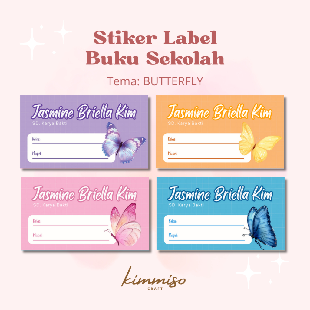[Kimmiso] Stiker Label Nama Buku Sekolah Tema BUTTERFLY Harga Satuan (Mohon Baca Deskripsi)