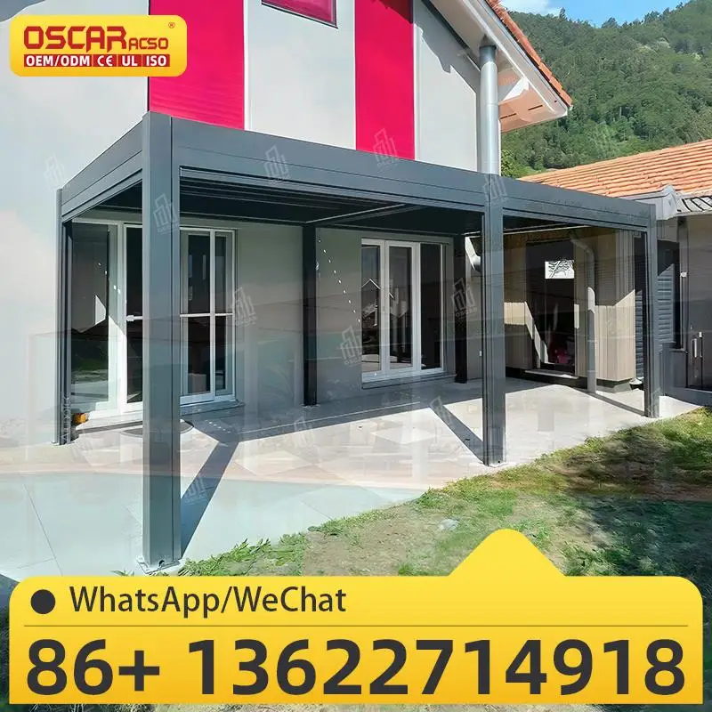 Наружная алюминиевая водонепроницаемая жалюзи на крыше, моторизованная металлическая садовая беседка с пластиковым каркасом, роскошная современная для заднего двора, патио, террасы