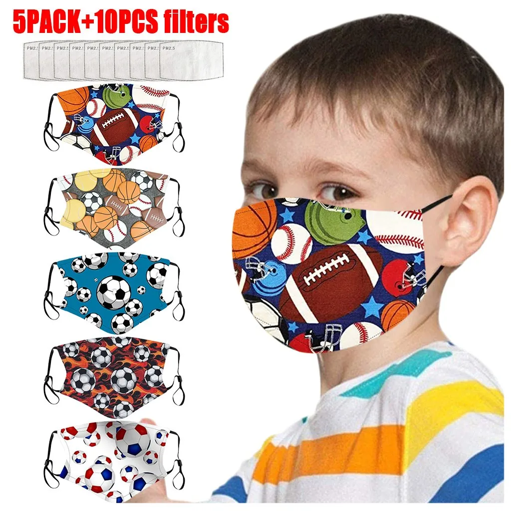 Наружная детская маска для лица с принтом футбольного мяча многоразовая моющаяся регулируемая спортивная дышащая 5 шт. маска с 10 шт. проклад...