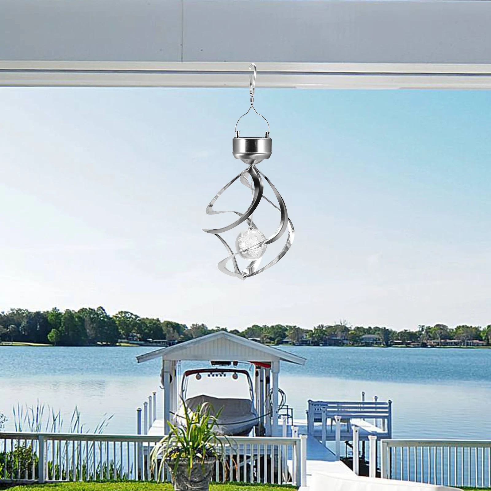 Наружная светодиодная люстра из нержавеющей стали, полая Вращающаяся лампа с шариками из акрила, на солнечной батарее, для сада, ландшафта, ...