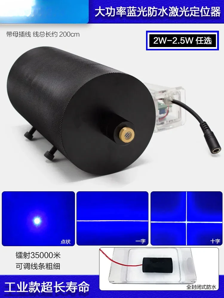 Наружный мощный синий лазерный локатор мощностью 2,5 Вт, водонепроницаемый промышленный прямой модуль, лазерная лампа с перекрестной точкой