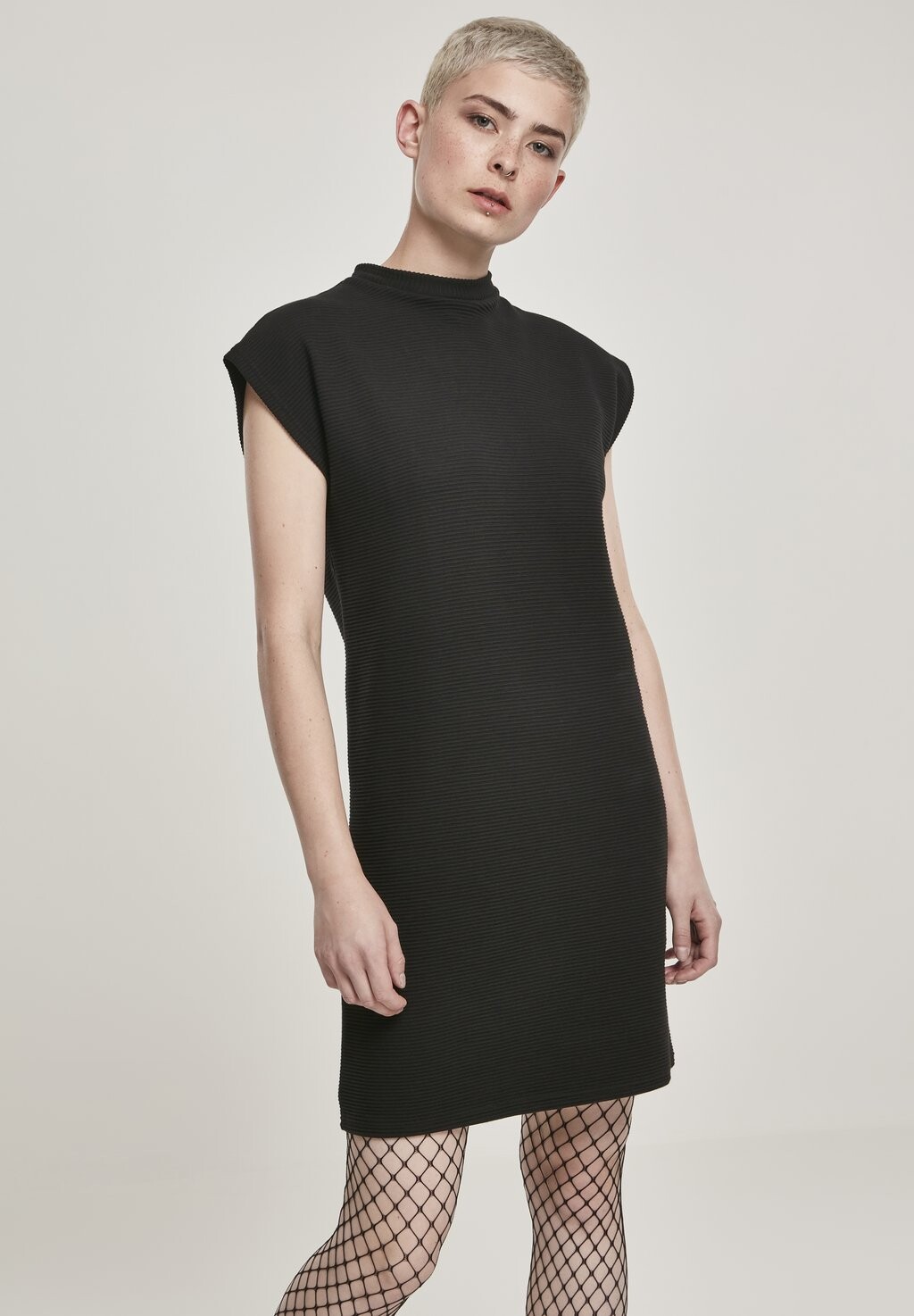 Женское облегающее мини-платье с высоким воротником, длинным рукавом и открытыми плечами
