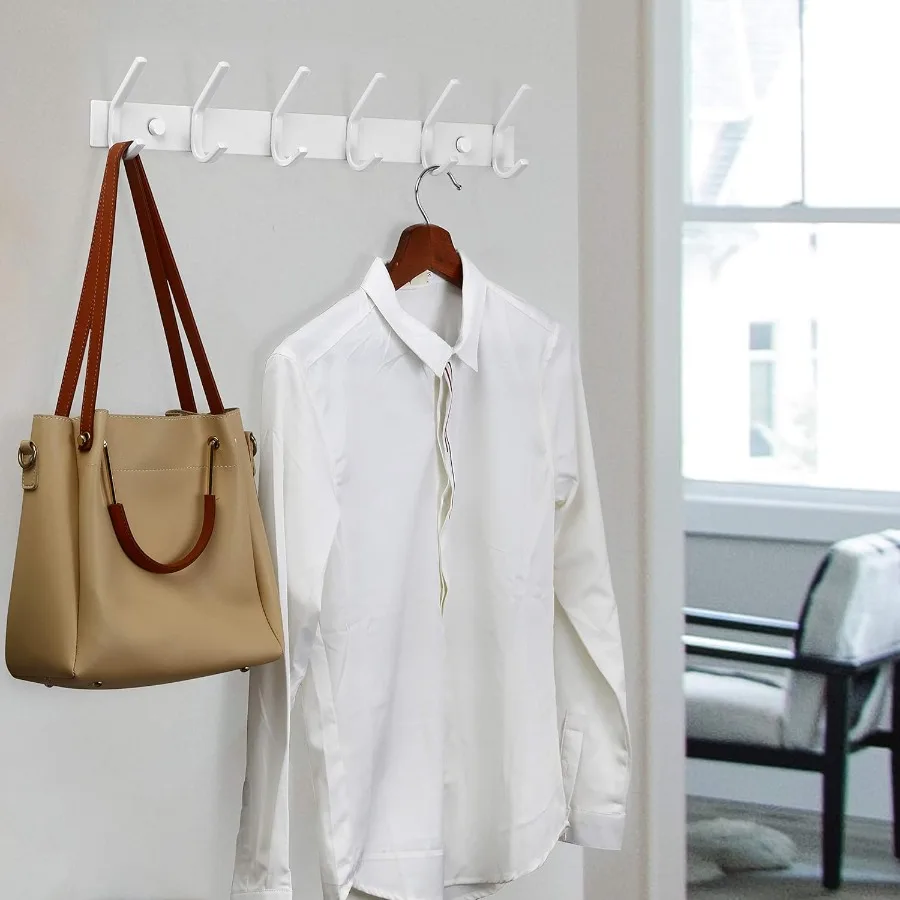 Настенная вешалка для одежды с 6-крючками для эффективной организации пальто, курток, шапок и одежды в прихожей, прихожей или спальне W