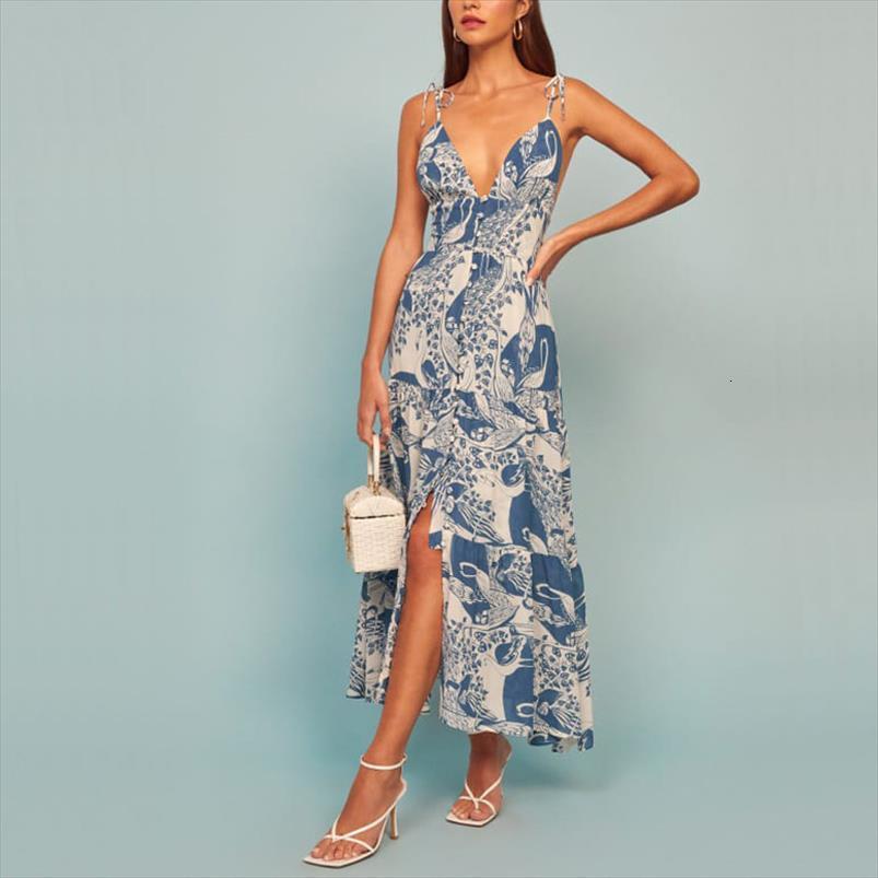 summer holiday beach casual printed womens dress slim long maxi sling backless deep v neck swing vestidos, Black;gray