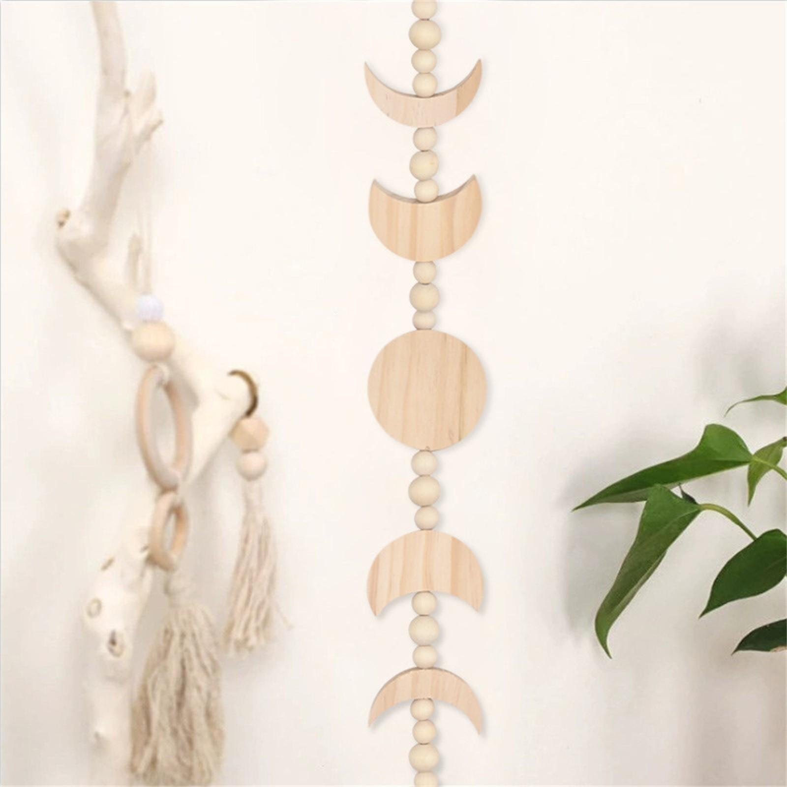 Настенная деревянная лунная гирлянда из бисера с кисточкой, тканый домашний декор в стиле бохо