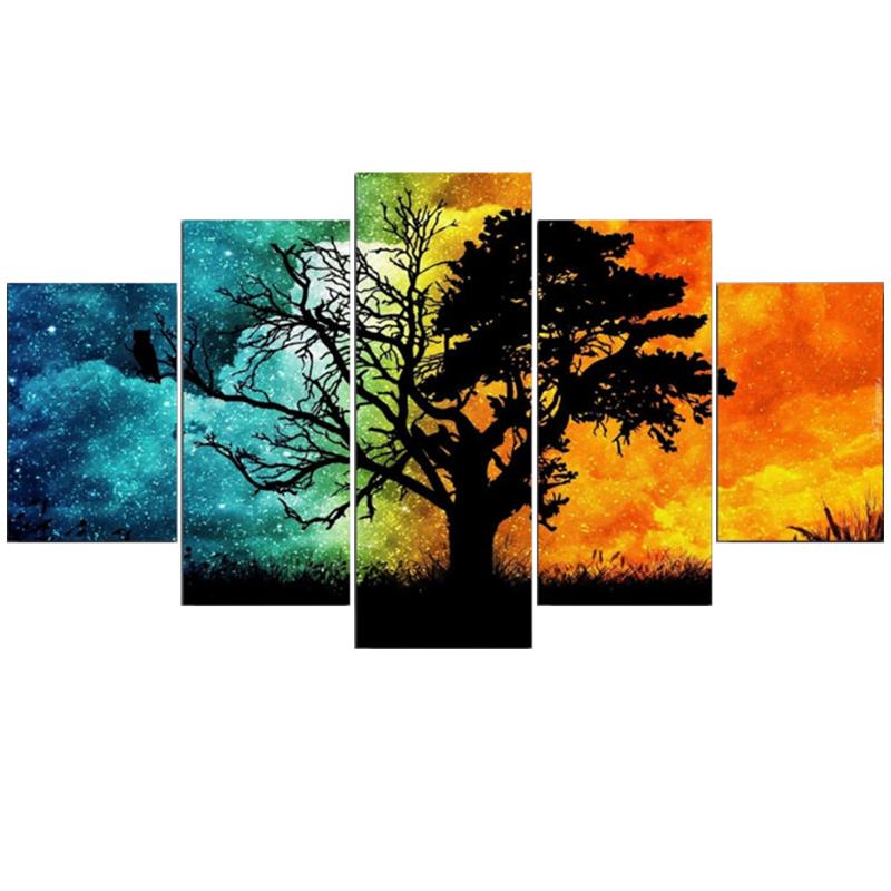 Настенная живопись на холсте HD печатные фотографии современный 5-панельный красочный пейзаж с деревом гостиная или спальня украшение постер Medium Size Unframed Canvas