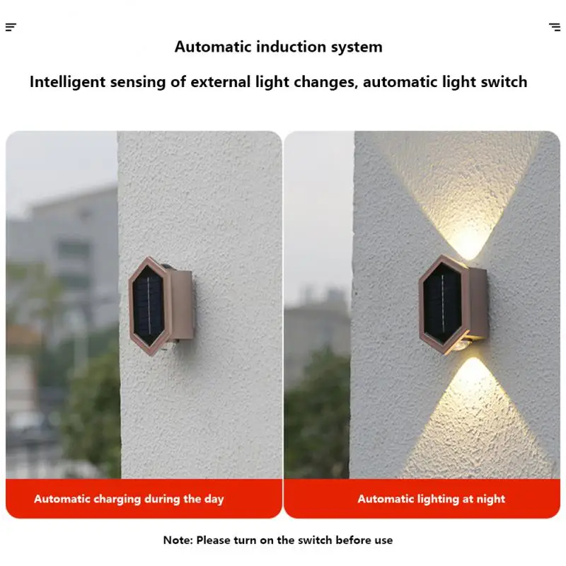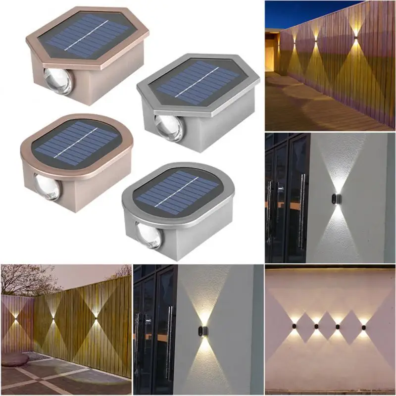 Настенная лампа на солнечной батарее, уличное теплое фонарь, водонепроницаемое освещение вверх и вниз, светильник для украшения сада, наружная настенная лампа