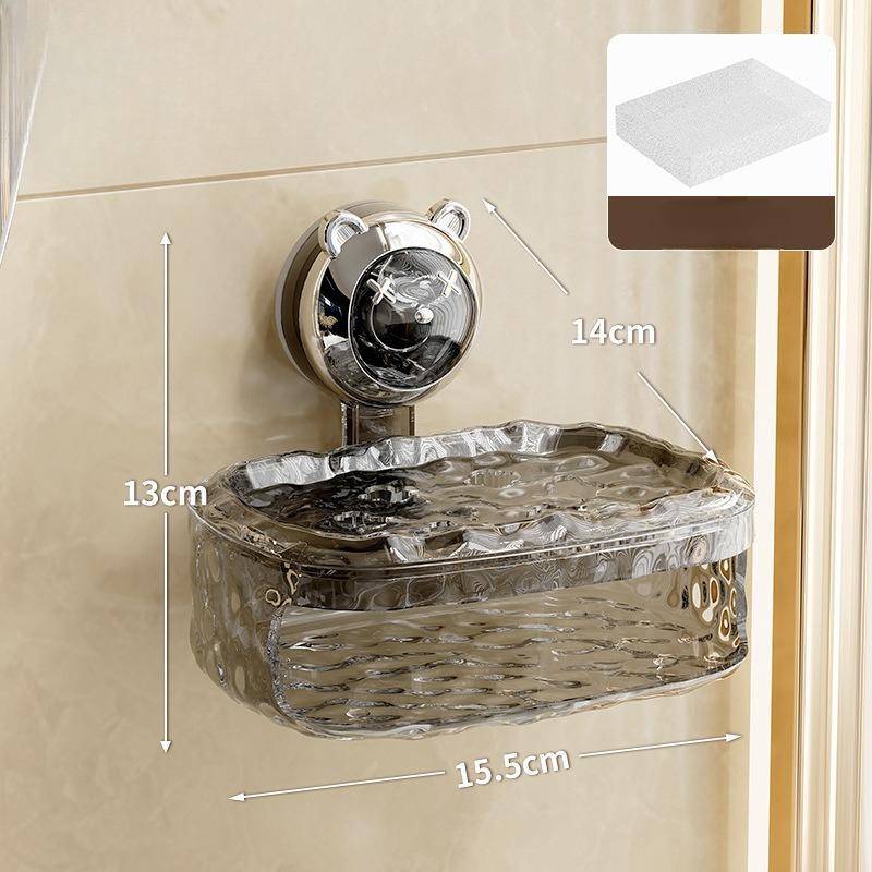 Настенная мыльница на присоске, не требует сверления, дренажная мыльница для ванной комнаты, высококачественная бытовая настенная двухслойная большая мыльница прозрачный/чёрный