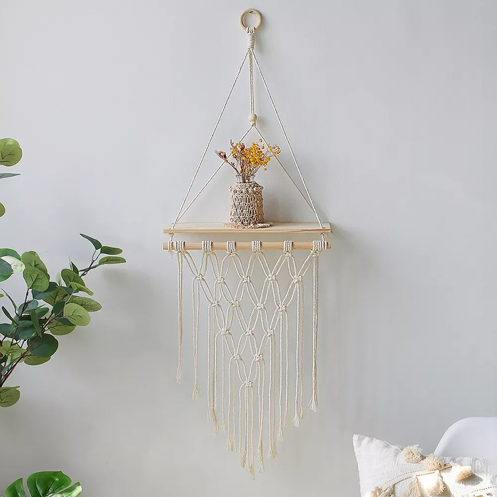 Настенная полка макраме в стиле бохо, Декор для дома, настенный подсвечник, плавающая полка для спальни, деревянные украшения, стеллажи для ...