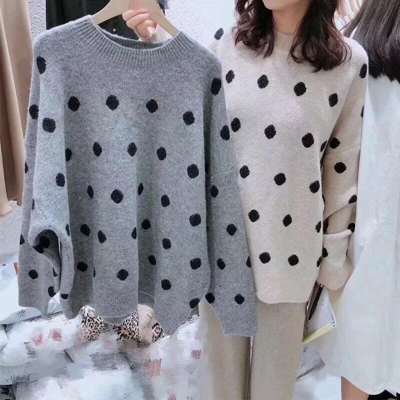 Polka Dot Pullovers Sweaters 2020 Autumn Winter O-neck Retro New Stylish Jumper Tops Mohair Warm Loose Sweater