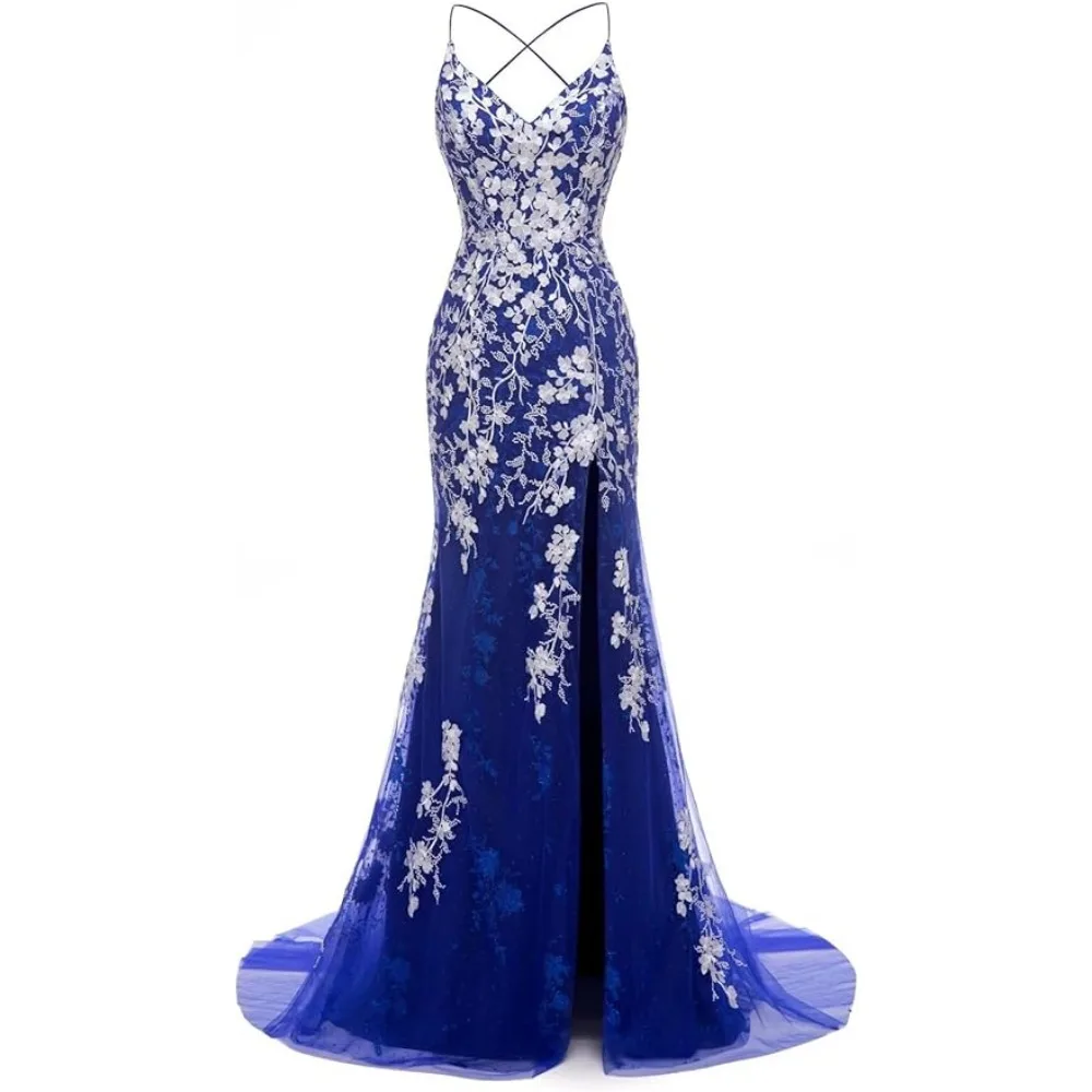 Длинное Тюлевое платье Wakuta для выпускного вечера, платье на тонких бретельках с V-образным вырезом, блестящее платье, коктейльные платья с высоким разрезом