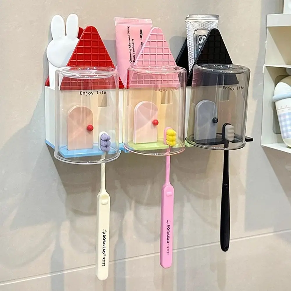 Настенный держатель для зубных щеток в форме мультяшного дома, компактная стойка для хранения зубной пасты, дышащая, большая несущая нагрузка