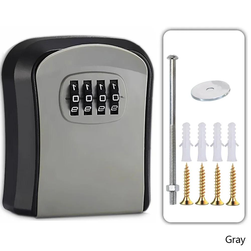 Настенный замок для ключей с 4-значным паролем, защитный замок без ключа для домашнего офиса, сейф для ключей, органайзер для секретного хранения Regular style серый