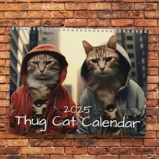 Настенный календарь 2025 года с иллюстрациями кошек, ежемесячный бумажный планировщик, ежедневный органайзер, украшение для стен дома/офиса Cat