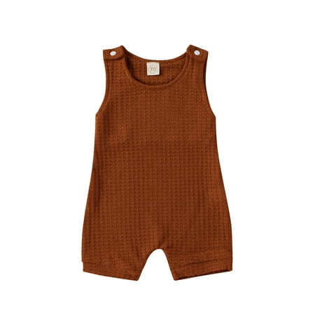 Mikilon Newborn Infant Baby Boys Girls Sleeveless Solid Romper Jumpsuit Baby Clothes for Girls 18-24 Months Brown on Clearance