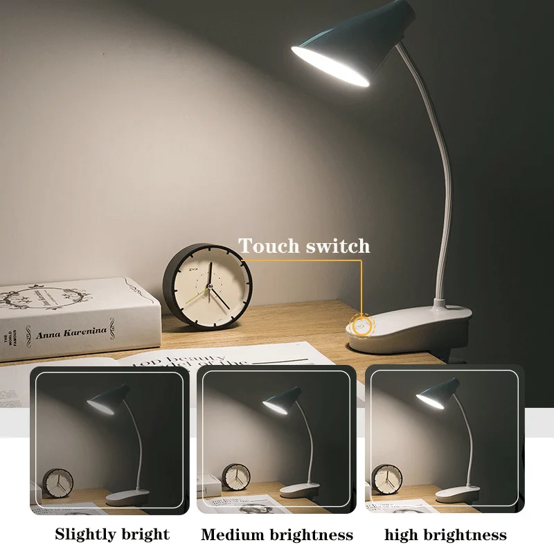 Настольная лампа со светодиодным зажимом, сенсорный переключатель включения/выключения, 3-режимный ночсветильник с регулируемой яркостью, ...
