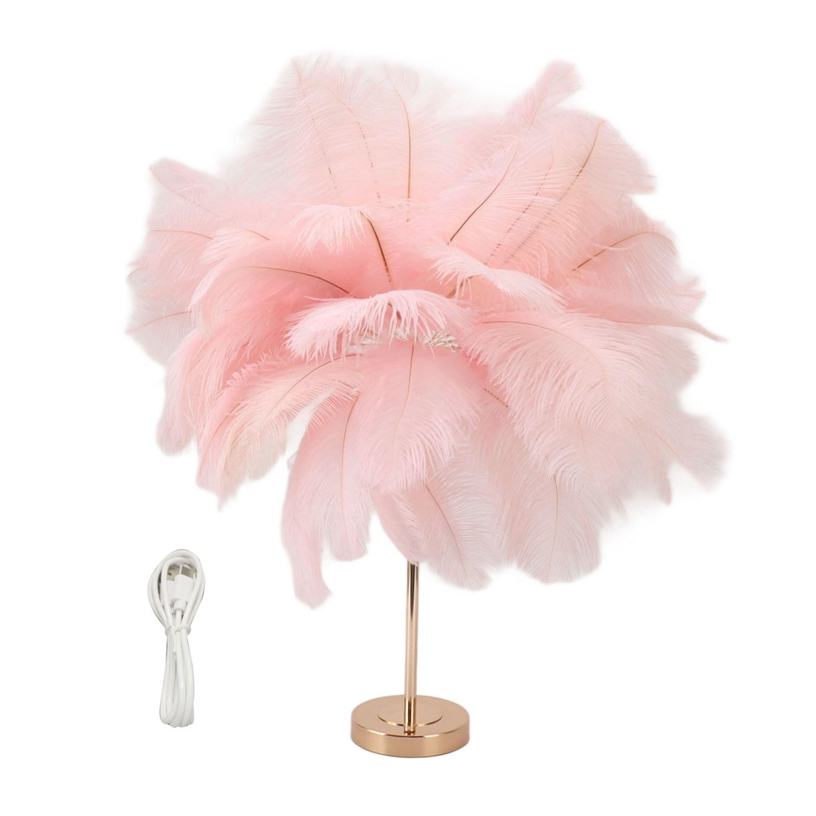 Настольная лампа Feather с 3-цветным сенсорным выключателем с регулировкой яркости и USB-подключением, романтическая, современная, декоративная, прикроватная розовый