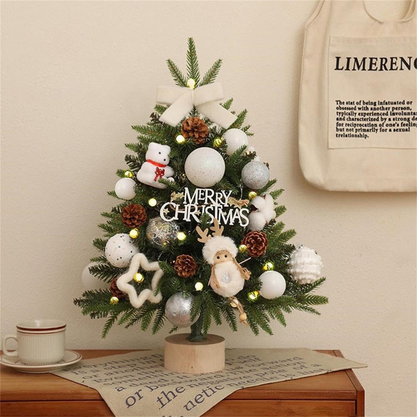 Настольная новогодняя елка, 18-дюймовая настольная новогодняя елка с деревянной основой, предварительно освещенная новогодняя елка с украшениями для помещений One Size белый