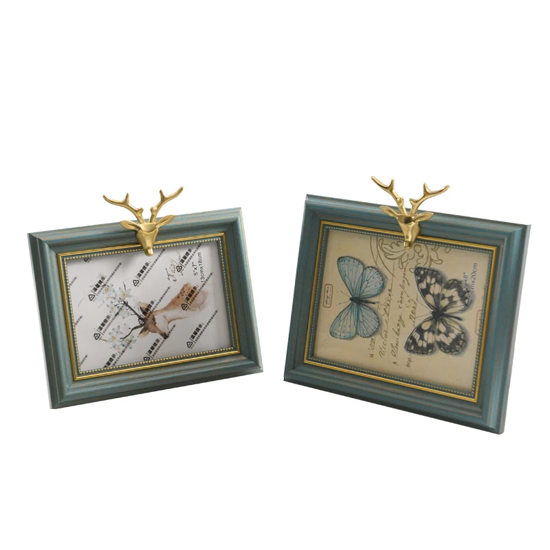Настольная фоторамка с головой оленя Европейская креативная Ретро цельная деревянная горизонтальная версия украшения фоторамка