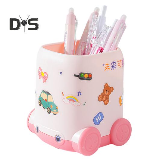 Настольный держатель для ручек в форме мультяшного автомобиля, многофункциональный настольный органайзер для кистей для макияжа для дома, школы, офиса розовый