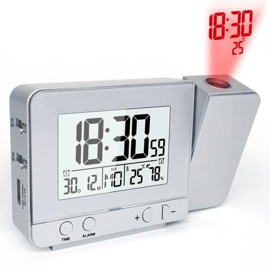 Настольный повтор, светодиодная цифровая подсветка, функция даты, зарядка через USB, будильник, проектор серебряный
