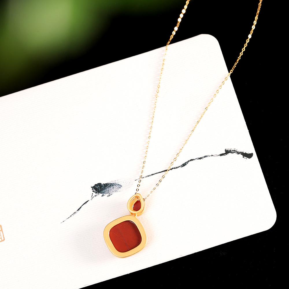Настоящее серебро S925, южно-красная квадратная подвеска, модное простое женское ожерелье
