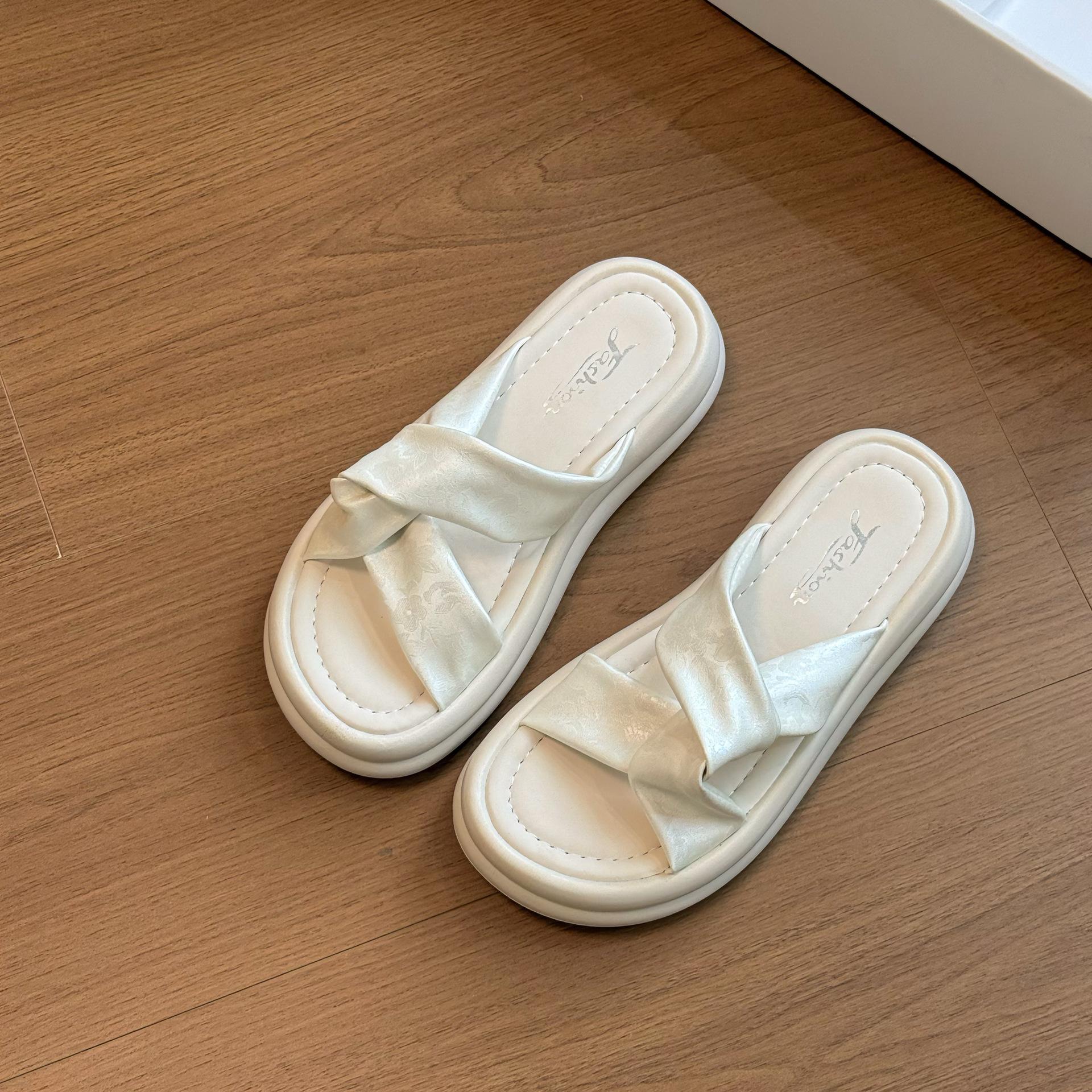 Наступая в дерьмо, пляжные шлепанцы на толстой подошве, женская обувь 2025, новая летняя коллекция, изысканные высококлассные крутые шлепанцы для ношения с юбками 40 бежевый