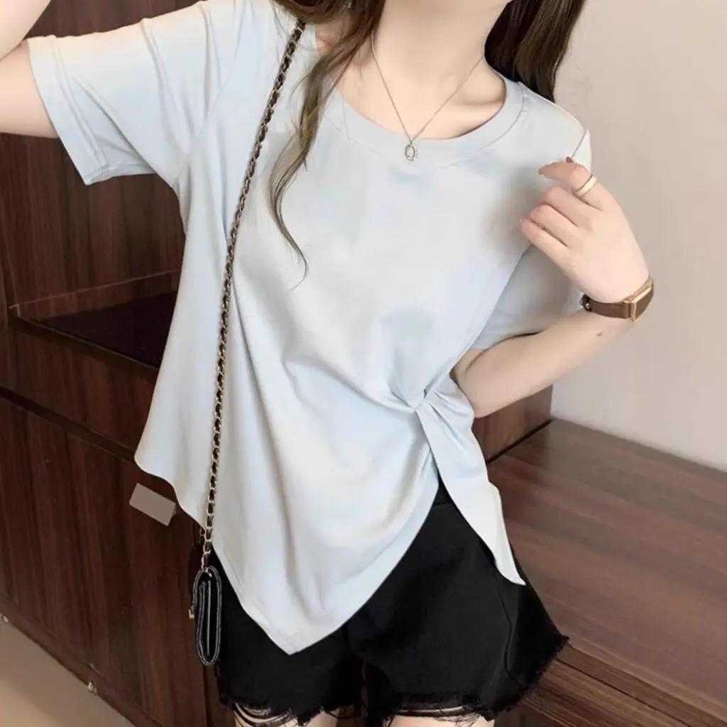 Женская желтая футболка широкого кроя с короткими рукавами, утягивающий повседневный топ, летний дизайн, новый универсальный топ с плечами