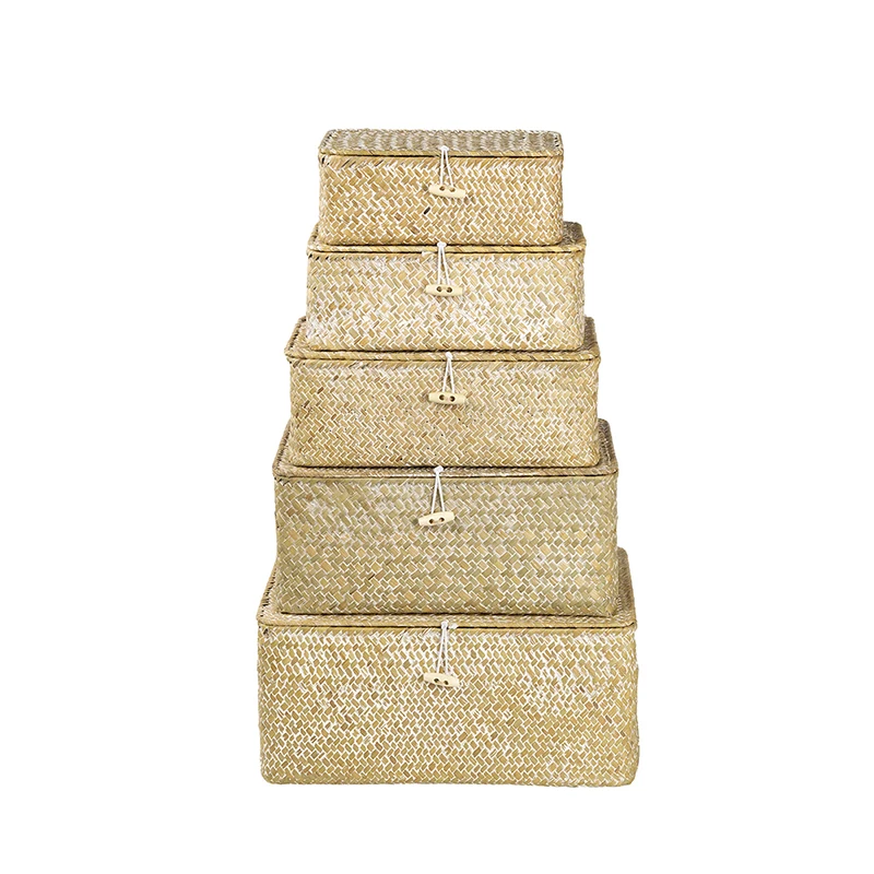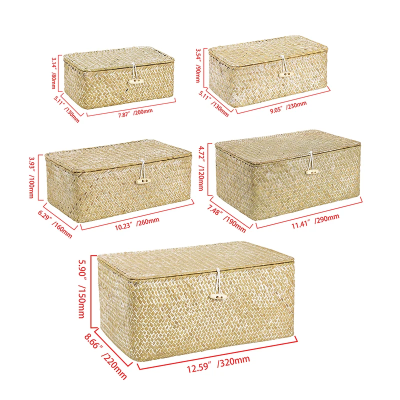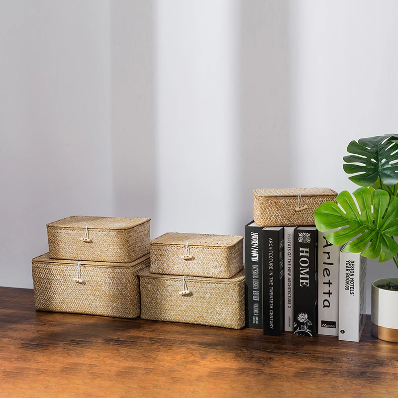 Натуральная Рабочая прямоугольная коробка с крышкой, Скандинавская плетеная корзина для белья, Домашний Настольный органайзер для хранения мелочей