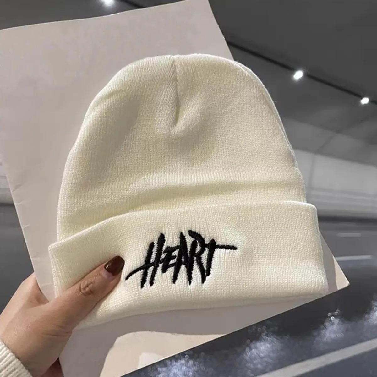 Натуральная Стильная Вязаная Шапка в Корейском Стиле с Эмблемой HE - Идеальна для Пар в Холодное Время Года Free&China белый
