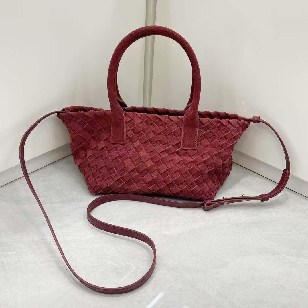 Натуральная кожа и плетеная корзина для овощей верхний слой матовая коровья кожа поддержка очень большой емкости подмышки ручная большая сумка для женщин Small size: 19 x 13 x 15cm вино красного