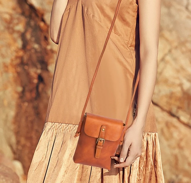 Натуральная кожа, кожа растительного дубления в стиле ретро, простая и универсальная, кремовая сумка через плечо на одно плечо для телефона.