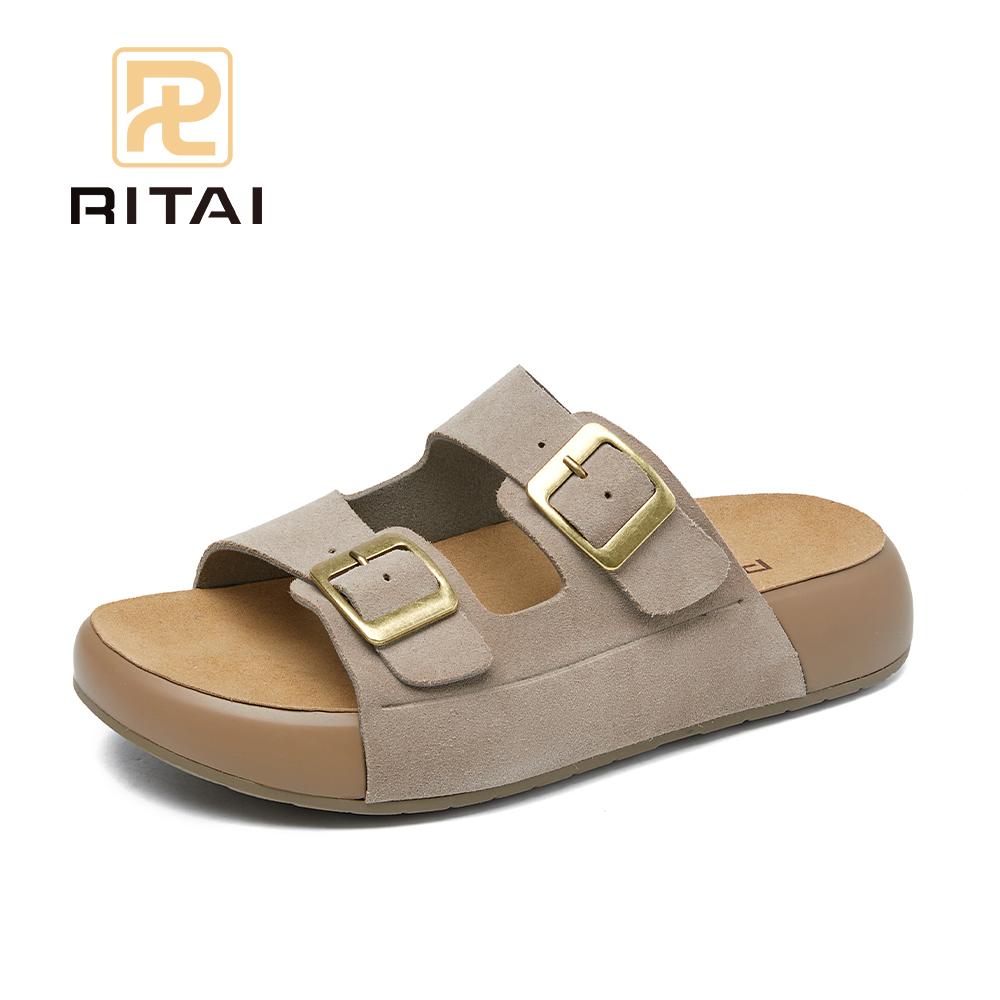 Натуральная коровья замша женские тапочки Birkenstock с круглым носком и толстой подошвой уличные тапочки винтажные нескользящие домашние тапочки 35 серый