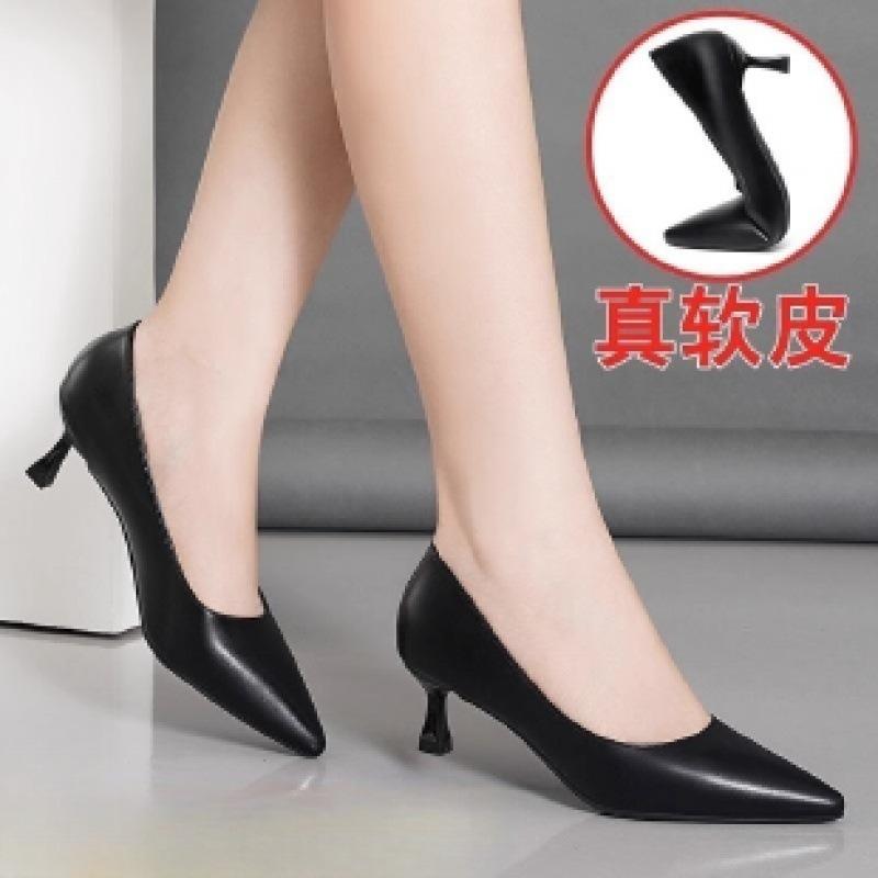Натуральная мягкая кожа средний каблук туфли-лодочки женские острый носок тонкий каблук профессиональная рабочая обувь универсальная мягкая подошва черные формальные рабочие туфли на высоком каблуке 40 чёрный