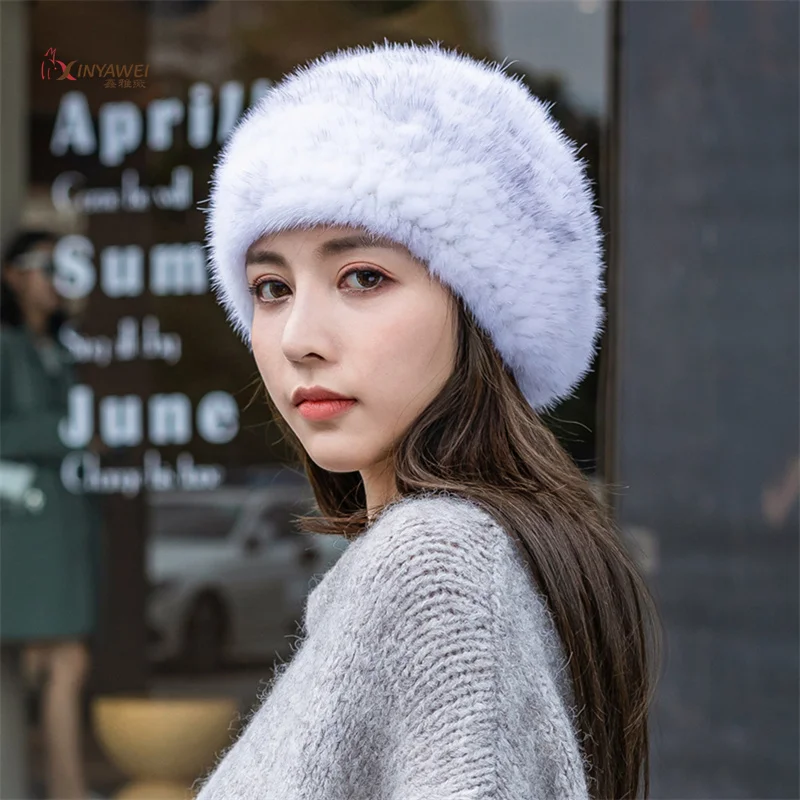 Натуральная норковая меховая шапка принцессы, женская зимняя уличная Модная Повседневная Теплая Лыжная шапка с ушками, Новые шапки для женщин