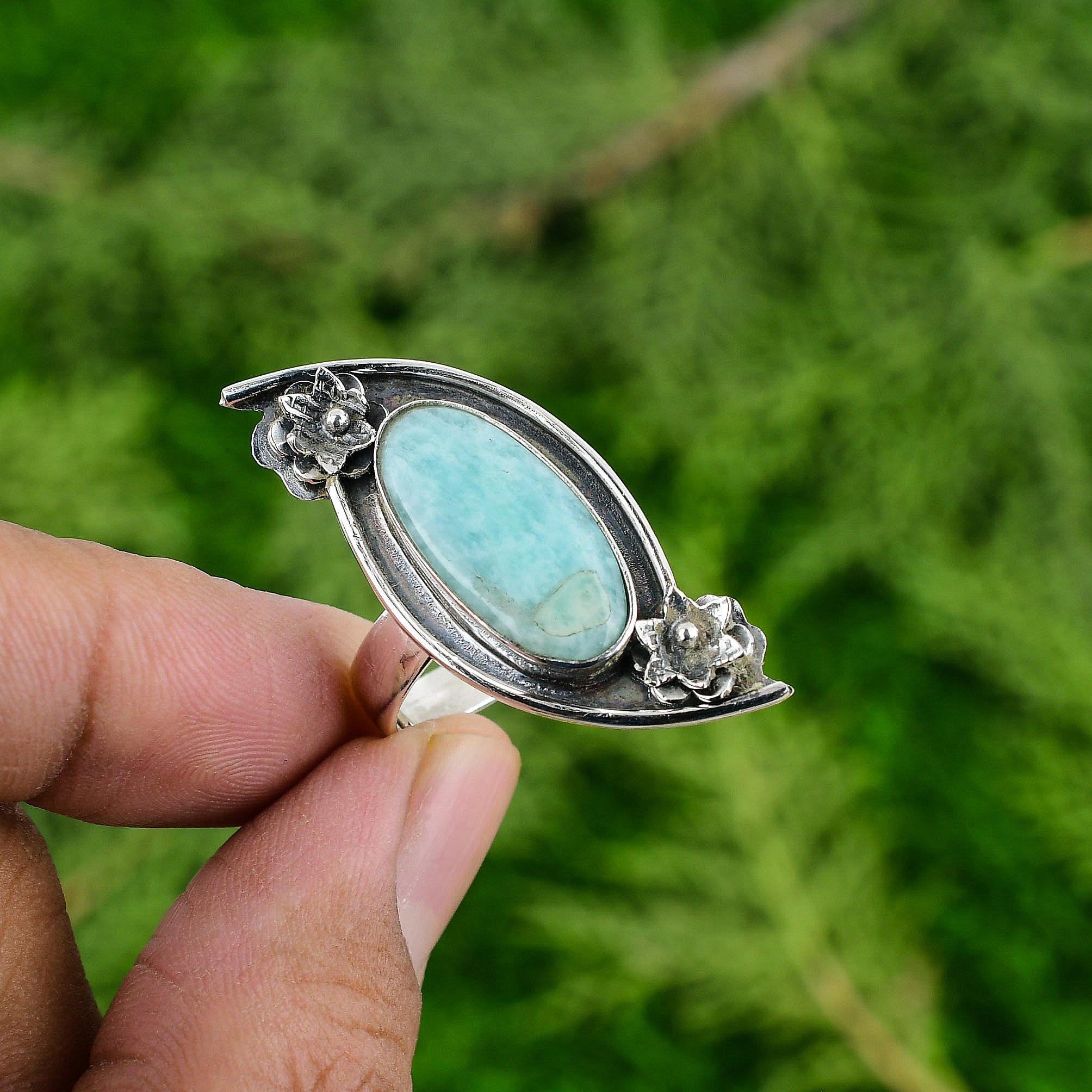 Натуральный Амазонит Драгоценный Камень 925 Серебро Солитер Цветок Регулируемое Кольцо для Девочек Adjustable