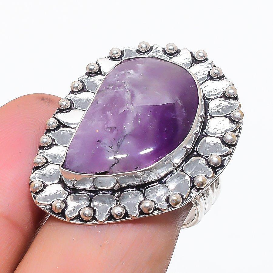 Натуральный Аметист Шалфея Драгоценный Камень Серебро 925 пробы Ювелирное Кольцо Размер 8 A5k93