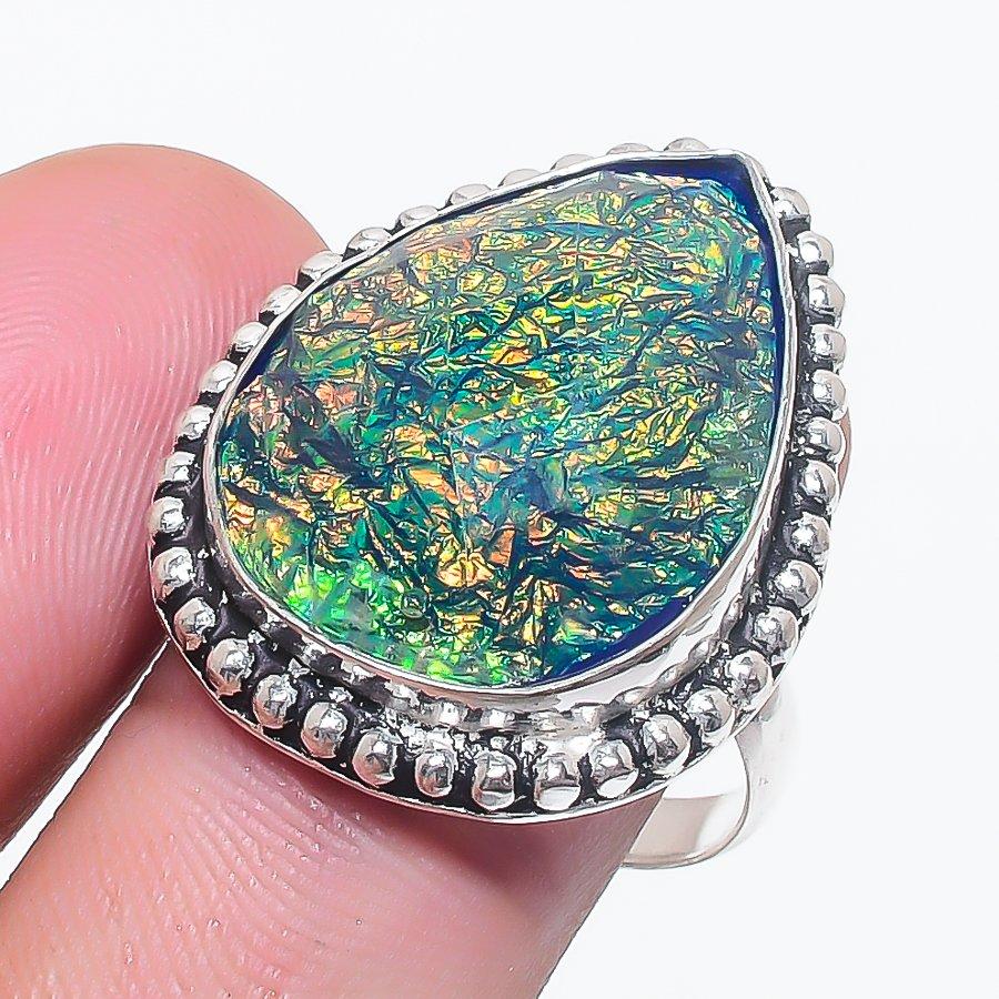 Натуральный Зеленый Триплет Опал Драгоценный Камень 925 Стерлинговое Серебро Ювелирное Кольцо Размер 9 R6J52