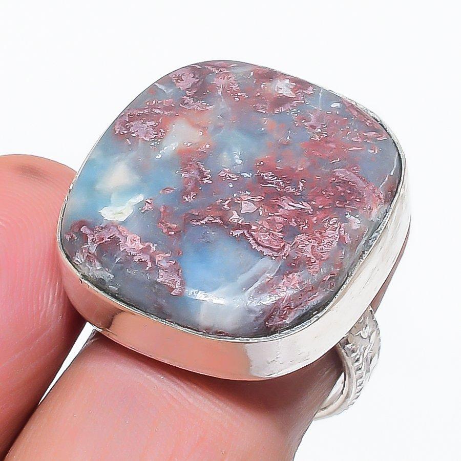 Натуральный Ларимар Драгоценный камень Ручная работа 925 Стерлинговое серебро Ювелирное кольцо Размер 6.5 Q4k86