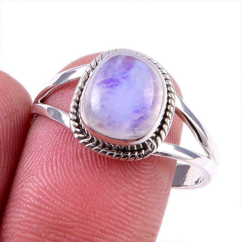Натуральный Радужный Лунный Камень Драгоценный Камень 925 Проба Цельное Стерлинговое Серебро Кольцо Размер 10 R1i38