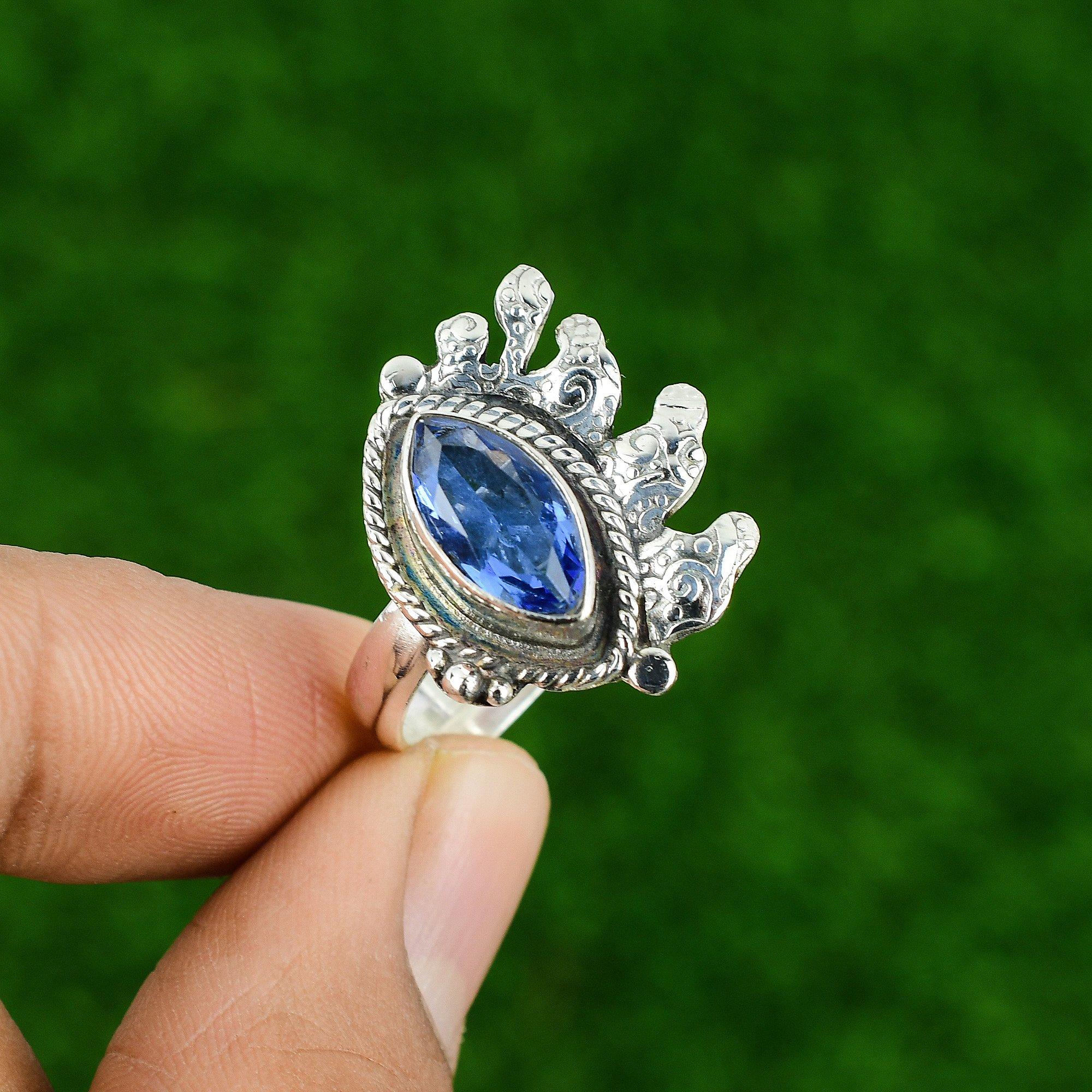 Натуральный Танзанит Кварц Драгоценный камень Серебро 925 пробы Кольцо Обещания Регулируемое для Девочек Adjustable