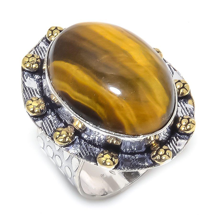 Натуральный драгоценный камень «Тигровый глаз» из стерлингового серебра 925 пробы, подарочное двухцветное кольцо, размер 8 T2f79