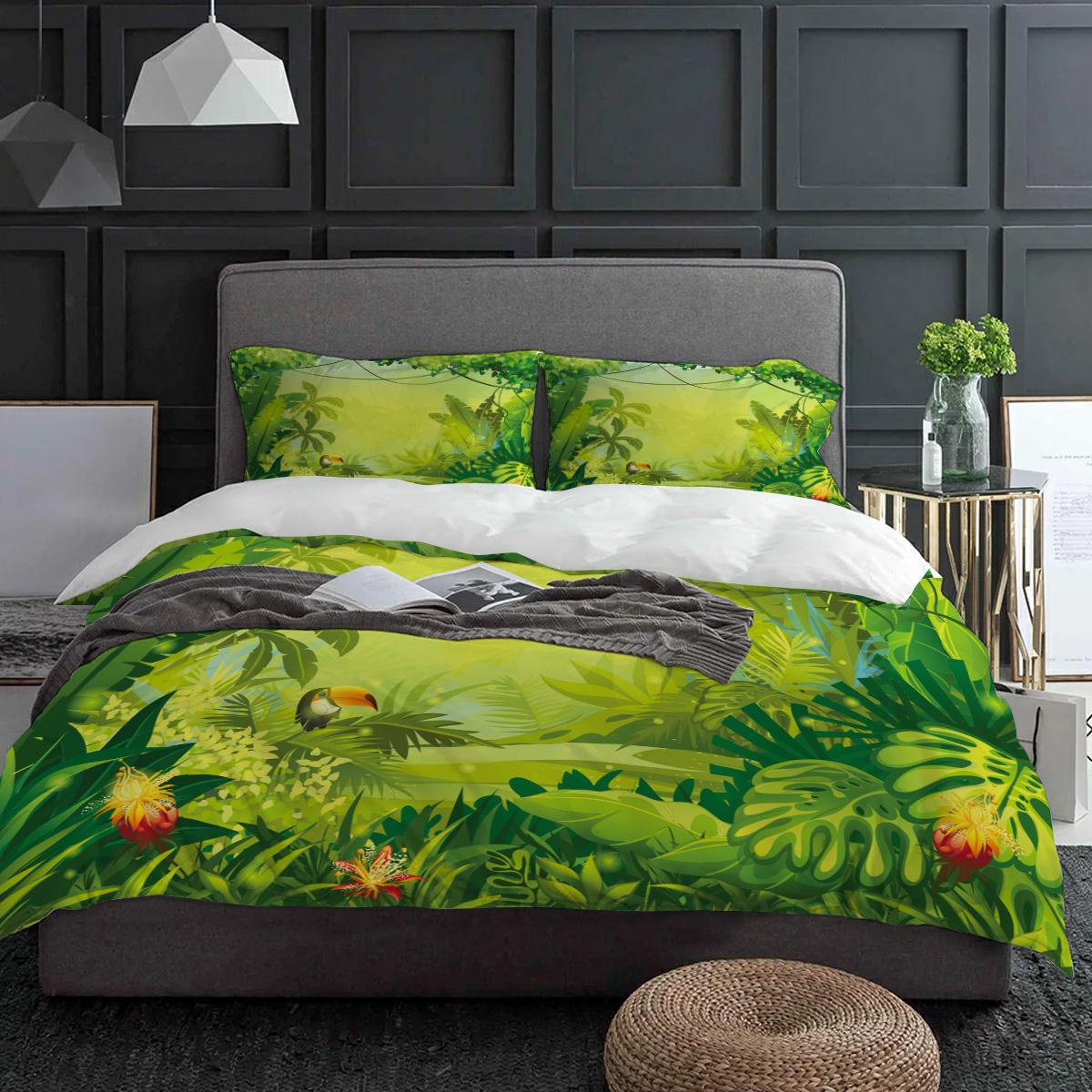 Натуральный зеленый лес птица цветок мультяшный постельный комплект 3 предмета пододеяльник наволочка одеяло чехол двуспальный комплект домашний текстиль EU single(135x200cm)