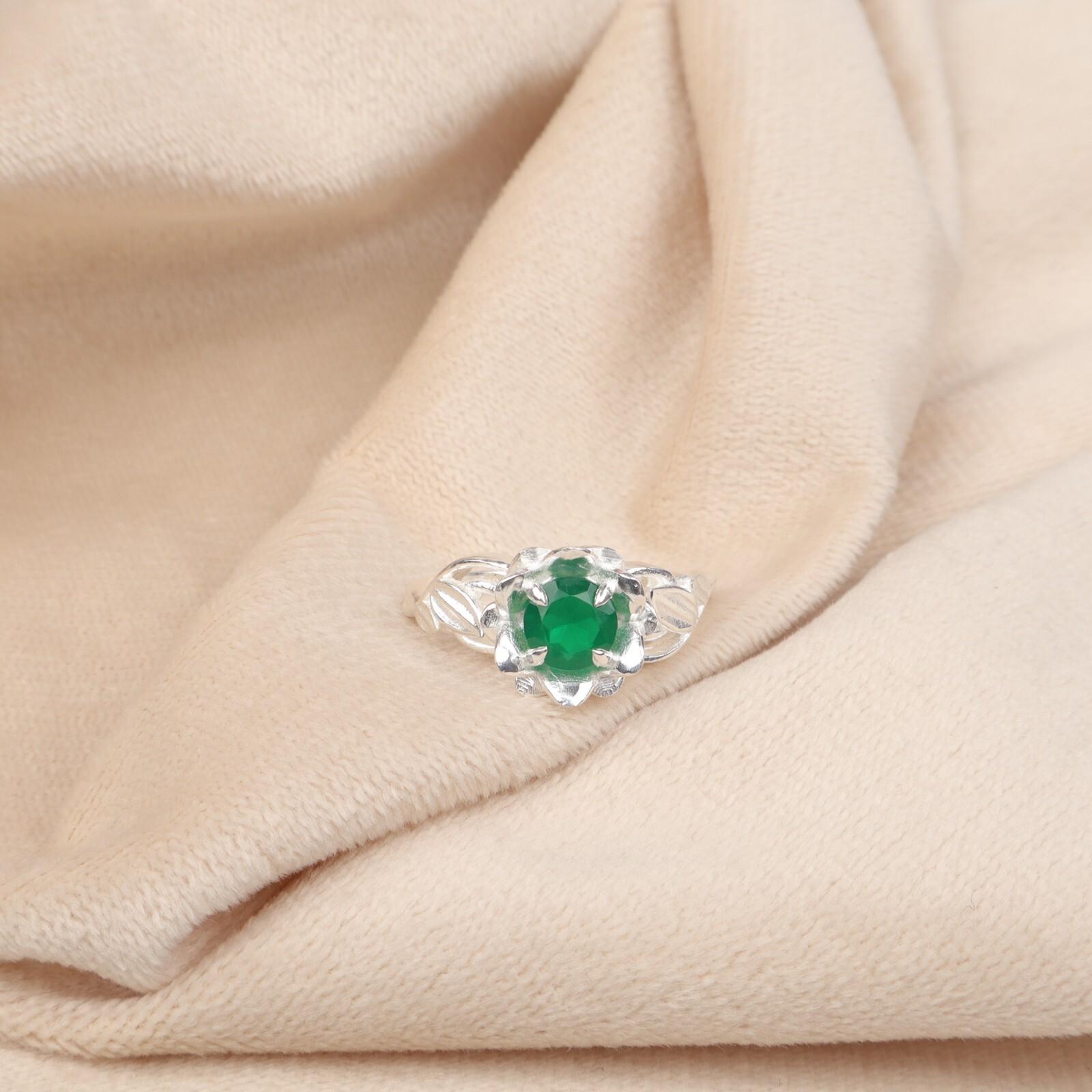 Натуральный зеленый оникс Драгоценный камень 925 Стерлинговое серебро Ювелирные изделия Ручной работы Обручальное кольцо CZR-2-1 4